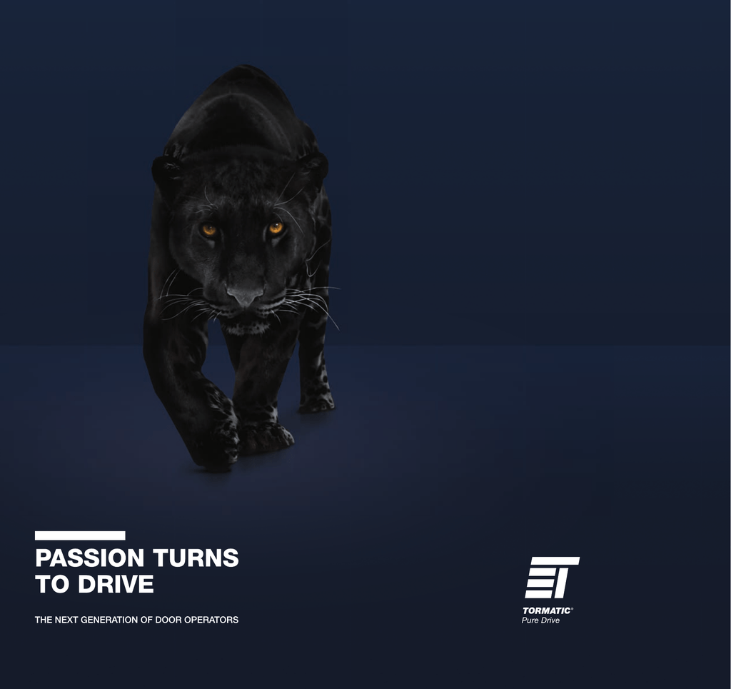 THREE GENERATIONS ... ... ONE DNA. TORMATIC 1976 The time has come. With the Tormatic 3000 G/5500 operator we introduced a track with a C-profile – Initially operated via set pre-programmed radio channels and afterwards by radio-operated remote control featuring channels that can be individually encoded. 1979 DORMA acquires 49 % of the company holdings. Five years later DORMA goes all in and takes over TORMATIC completely. 1985 WE HAVE BEEN WORKING WITH TORMATIC FOR YEARS ON A CONSISTENTLY INCREASING BASIS, NOT LEAST BECAUSE OF THE EXCELLENT, COLLEGIAL NATURE OF OUR WORK TOGETHER. We relocate entirely to Ennepetal, Germany where we expand our product portfolio with new operators such as the Tormatic GTA 510/520 and create a completely new design for our products. We conquer the market with additional hit products and new customers. 1988 The Tormatic GTA 540/550 is introduced as history’s first garage door operator with a 24 volt operator unit and control. 1991 Doors now shut very softly using the Soft-Stop automation of the GTA 540 E. From 1994 all of our operators are equipped with Soft-Start and Soft-Stop functions. 1997 This operator now comes equipped with a house guard system featuring a status display inside the residence which can show whether the door is open or closed. 2000 TORMATIC becomes an independent corporation headquartered in Dortmund, Germany. Four years later the company form is altered and renamed Novoferm tormatic GmbH, an affiliate of the Novoferm Group. 2013 Since 2013 our company has been dedicated to the Pure Drive Vision 2020 in line with our company philosophy, Pure Drive. This position stands for functionality, focus and personal customer care in its purest form and gives us an unmistakable identity. 04 / 05 ÖZNUR CEBECI [ ITS – Industrie Tore Service GmbH, Commercial Clerk ] Circa 380,000 77 KILOMETERS. THAT’S HOW FAR OUR SALES TEAM TRAVELS AROUND THE WORLD EACH YEAR. THAT’S ALMOST PRECISELY THE DISTANCE BETWEEN THE EARTH AND THE MOON. PEOPLE ARE EMPLOYED BY OUR COMPANY: 27 WOMEN AND 50 MEN. 203 CLOSE PROXIMITY TO CUSTOMERS ... ... CREATES THE BEST RELATIONSHIPS We give everything for our customers, and sometimes even more. The word “impossible” is not in our vocabulary. All of our customers receive precisely the products, which meet their requirements. That’s why many of our operators and controls are individually tailored specifically to the customer’s needs. We have been working in accordance with this principle now for more than 45 years. A decisive factor in this is always the enthusiasm, dedication and team spirit of our employees. Innovative processes can only become living visions through them and it is through them that our customers experience the best possible customer service. 10 / 11 YEARS OF COLLECTIVE EXPERIENCE IS HOUSED IN OUR 14-PERSON SALES TEAM. THIS TRULY REPRESENTS WORLDCLASS EXPERTISE. WHAT DRIVES OUR ACTIVITIES ... ... SPEAKS FOR OUR PRODUCTS 01 QUALITY Comprehensive quality management is an integral component of our long-term company strategy. Employees from every department research, develop and test new solutions in order to optimise sequences, materials, processes and technologies even further. The result is products that you can rely on for years to come with long-lasting, appealing technology and easy programmability. TORMATIC: A STRONG TEAM THAT WORKS ON MUTUAL OBJECTIVES WITH GREAT ENTHUSIASM. 02 ENVIRONMENTAL PROTECTION We don’t just think about tomorrow in terms of technology. This is why environmental protection is a crucial component of all our activities integrated into our company targets. Our endeavours to achieve the highest possible product quality and performance also encompass the conservative use of natural resources. In addition, we pro-actively tackle the causes of possible detriments to the environment, promote climate protection and have consistently reduced the energy consumption of our operators. 03 INNOVATION We know that research and development are indispensable today against the backdrop of growing market demands. We therefore consistently invest in innovations aimed at revolutionising the door operators market with new ideas. We have managed to increase the performance of our operators by an entire 25 %, reduce our steel requirements by 85 % and significantly reduce our energy consumption. But we’re not just interested in inner beauty! Our products are attractively shaped, aesthetically appealing and impressive in their sleek elegance. 12 / 13 JONAS DEICKE [ Novoferm tormatic GmbH, Product Manager ] RESIDENTIAL OUR OPERATORS DON’T JUST MOVE DOORS ... ... THEY MOVE US, TOO We always want only the best, and not just for our customers, but also in the development of operator and control technologies. We have taken innovative ideas to develop pioneering technologies and shaped them in attractive designs. We are always determined to meet the very highest in both technical and design demands. 14 / 15 GTA 702 NRG We continuously conceptualise, improve and develop garage doors ever further, often from scratch. TORMATIC operators combine the latest in technology with contemporary energy and resource efficiency at the very highest level. Their optimised designs, modern energy-saving LED lighting technology, stability and maximum performance are impressive and convincing. INDUSTRIAL Thanks to intelligent control technology our industrial door operators can manage even the most demanding tasks in the uncompromising day-today environment of the industrial world with outstanding performance, lasting reliability and great flexibility and efficiency. The spectrum of applications for our operators includes logistics, goods and personal transport, energy management, admission control and building security. T100 DES