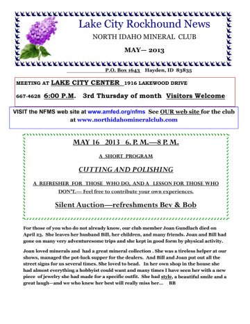 May 2013 - North Idaho Mineral Club