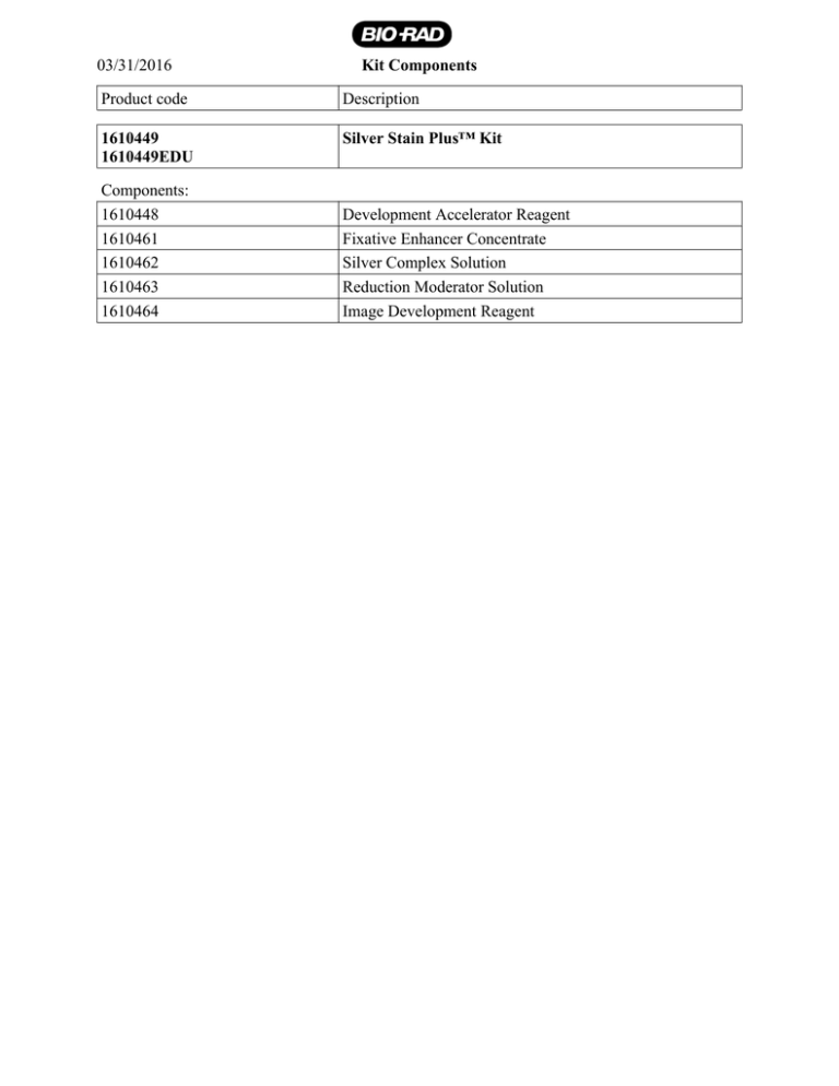 Kit Components 03/31/2016 Product code Description - Bio-Rad