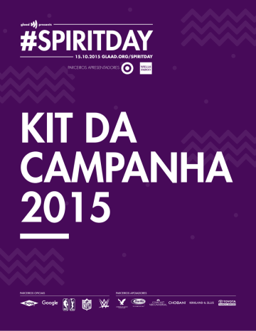 15.10.2015 PARCEIROS APRESENTADORES KIT DA CAMPANHA 2015 PARCEIROS OFICIAIS PARCEIROS APOIADORES A tradução do Kit da Campanha Spirit Day, da GLAAD, para diversas línguas foi possível graças à generosa contribuição do Google em apoio à iniciativa da GLAAD “Vozes Globais”. A GLAAD também agradece ao apoio da Associação de Promoção aos Direitos Humanos, à Ética Pública e ao Aprimoramento Institucional Brasil Instituições – Brinst, que auxiliou com a tradução do Kit da Campanha para o Português e com sua divulgação no Brasil. SPIRIT DAY KIT DA CAMPANHA 2015 O que é o Spirit Day? No dia 15 de outubro de 2015, milhões de pessoas ao redor do mundo vestirão a cor roxa para o Spirit Day em um ato contra o bullying e em apoio ao movimento LGBT - lésbicas, gays, bissexuais e transgêneros. Num esforço para reunir aliados e reduzir a lacuna entre o crescimento das proteções legais e a maior aceitação e integração da comunidade LGBT, a GLAAD está mais uma vez em projeção central para engajar a participação de pessoas, celebridades, empresas, pequenos negócios, meios de comunicação, escolas, comunidades locais e até mesmo órgãos e instituições governamentais. No discurso do presidente Obama no Mês do Orgulho Gay de 2015, ele declarou que “para incontáveis jovens, não é suficiente dizer que as coisas irão melhorar (em referência à campanha “It gets better”); também devemos agir”. No Spirit Day, os participantes poderão demonstrar seu apoio às crianças, adolescentes e jovens LGBT simplesmente usando a cor roxa: vestindo essa cor, falando sobre o bullying e agindo nas comunidades locais. Este kit irá ajudá-lo a conquistar a participação de seus amigos, colegas, da mídia local e das autoridades públicas. Ao divulgar as informações sobre o Spirit Day, você ajudará a transformar sua comunidade com um ato contra o bullying e em uma demonstração de apoio à juventude LGBT. Como posso participar? Comprometa-se com a cor roxa: Assine o compromisso do Spirit Day agora mesmo no site glaad.org/spiritday e vista-se de roxo no dia 15 de outubro em um ato contra o bullying. Incentive os membros de sua comunidade a fazer o mesmo. 1. Comprometa-se com a cor roxa: Assine o compromisso do Spirit Day agora mesmo no site glaad.org/spiritday e vista-se de roxo no dia 15 de outubro em um ato contra o bullying. Incentive os membros de sua comunidade a fazer o mesmo. 2. Vista-se de roxo online: Coloque o filtro roxo nas suas fotos de perfil do Facebook, Twitter e Instagram. Use o aplicativo da Glaad no glaad.org/spiritday. Compartilhe o seu apoio: use o Twitter, poste mídias, envie Snapchats, grave Vines e tire selfies com a cor roxa no seu Spirit Day usando #SpiritDay. Sugestão de tweet: “Me acompanhe vestindo a cor roxa pelo #SpiritDay no dia 15/10 em apoio à juventude LGBT. Todos de roxo aqui: glaad.org/spiritday”. 3. Doe para o fundo Spirit Day: Contribuindo com qualquer quantia, você estará ajudando as conquistas da GLAAD no combate ao bullying, protegendo a juventude LGBT e levando o Spirit Day para mais pessoas ainda. Descubra como em glaad.org/spiritday/ donate. Como posso incentivar a participação da comunidade? 1. Vista-se de roxo no seu trabalho, na escola, na igreja ou simplesmente ao andar pela cidade. Diga às pessoas o motivo de você estar usando essa cor, compartilhe a história e a mensagem do Spirit Day. Peça às pessoas à sua volta que participem usando a cor roxa em um ato contra o bullying. 2. Contate os estabelecimentos comerciais e organizações da região, e peça apoio para o Spirit Day e para juventude LGBT no uso da cor roxa em seus locais de trabalho e nas redes sociais. Incentive os veículos de comunicação locais a cobrirem o evento do Spirit Day ou relate uma história que desperte a conscientização sobre o bullying e os desafios enfrentados pela juventude LGBT. 3. Organize um evento para o Spirit Day no centro comunitário de sua cidade, no campus da sua universidade ou em outra área pública. 4. Incentive os participantes a usarem a cor roxa e concentre o evento em despertar a conscientização sobre os desafios enfrentados pela juventude LGBT e sobre o bullying. Como o Spirit Day começou? O Spirit Day começou em 2010 como uma resposta ao alarmante número de vidas perdidas para o suicídio de jovens LGBT – particularmente, a perda de Tyler Clementi. A estudante do Ensino Médio Brittany McMillan iniciou o movimento como um dia de conscientização, aceitação e amor para evitar esse tipo de tragédia. Com a ajuda do GLAAD, milhões de professores, locais de trabalho, personalidades da mídia e alunos vestiram a cor roxa, que simboliza o espírito na bandeira com o arco-íris, para marcar sua posição de solidariedade à juventude LGBT. Hoje, o Spirit Day é um movimento internacional de solidariedade. Desde 2010, todos os anos, na terceira quinta-feira de outubro, milhões de pessoas ao redor do mundo se vestem de roxo para se manifestarem contra o bullying e para acelerar a aceitação de crianças, adolescentes e jovens adultos LGBT. Quando Laverne Cox acendeu a luz roxa na Estátua da Liberdade durante o Spirit Day do ano passado, ela chegou ao cerne desta visão: “Quero que a juventude LGBTQ de todo esse país saiba que eles são lindos, que foram feitos de maneira divina e que suas vidas têm importância”. Tudo começa com você. 3 SPIRIT DAY KIT DA CAMPANHA 2015 ! Os fatos O Departamento de Saúde e Serviços Humanos dos Estados Unidos (StopBullying.gov) define o bullying como “um comportamento indesejável e agressivo entre crianças de idade escolar que envolve o desequilíbrio de poder real ou inferido”. O bullying pode incluir assédio verbal, agressão física, exclusão social ou ameaças cibernéticas. O comportamento do bullying costuma ser repetitivo, direcionado e provoca consequências de longo prazo. Desde 1999, a Rede de Educação Gay, Lésbica, Hétero (