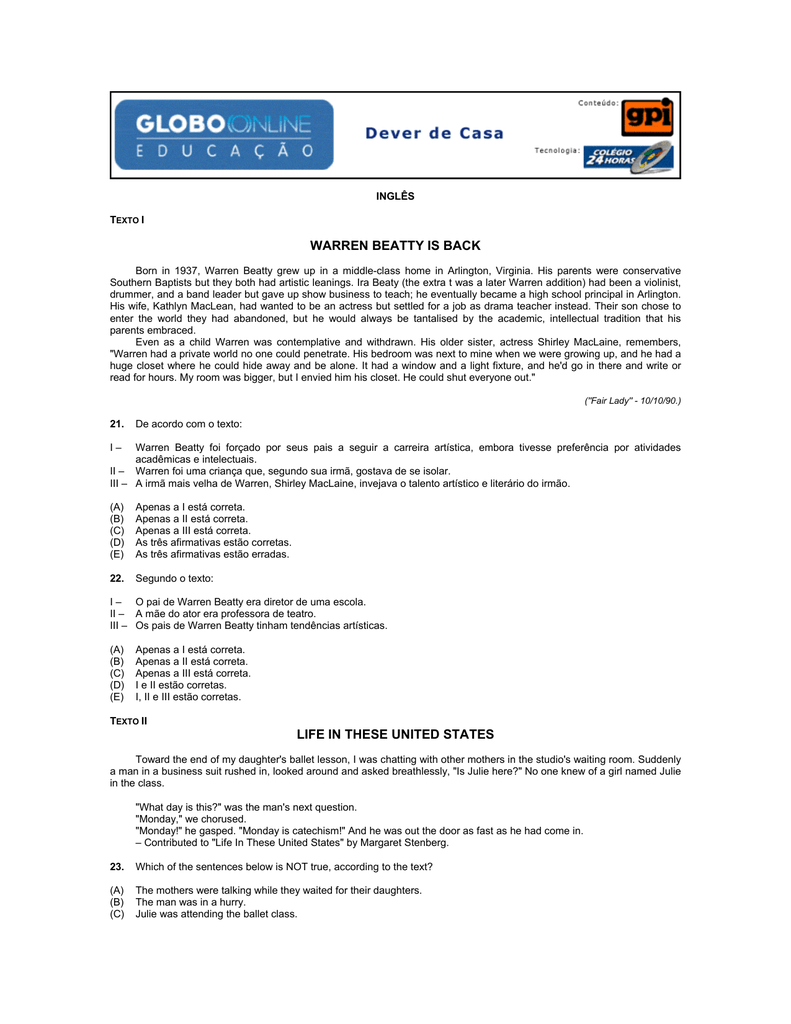 I – O pai de Warren Beatty era diretor de uma escola.