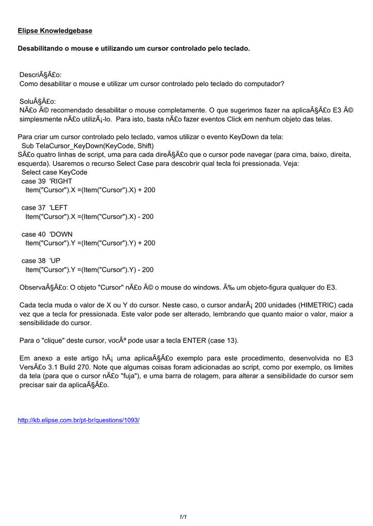 Elipse Knowledgebase Desabilitando o mouse e utilizando um