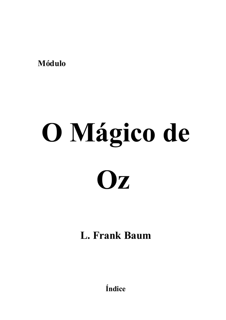 Módulo O Mágico de Oz L. Frank Baum Índice 01 – A função do Mágico na constituição do psiquismo, 03 02 – Observando com atenção reconhecemos o Bem e o Mal. O beijo da Bruxa Boa nos guia e protege na viagem, 05 03 – O encontro com o Espantalho e o Leão: quem foi o “corvo” em nossas vidas?, 11 04 – A história do Homem de Lata: a importância de reconhecer o mal, 15 05 – Quando aparecem os desafios, a nossa inteligência é posta a prova e os nossos talentos aparecem, 17 06 – As ajudas e perigos do caminho: “Coisas pequenas e delicadas quase me ma– taram e animaizinhos salvaram a minha vida”, 18 07 – A função do Mágico: antes e depois da viagem, 21 08 – O líder que é reconhecido por suas realizações, 27 09 – Reflexões Finais, 30 O Mágico de Oz de Frank Baum 2 1. A função do mágico na constituição do psiquismo No início da história nos é apresentado o contraste entre o ambiente árido e cinza do Kansas, onde Dorothy vive com seus tios – também cinzas – e a alegria, e espontaneidade de Dorothy, que ama e se alegra com seu cãozinho, o Totó. Era o Totó que fazia Dorothy rir e evitava que ela ficasse tão acinzentada como as coisas que estavam ao redor. Totó não era acinzentado: era um cãozinho preto com pêlo longo, sedoso – e tinha pequenos olhos negros que piscavam alegremente em cada lado do focinho engraçado e pequenino. Totó brincava o dia inteiro e Dorothy brincava com ele e o amava muito.(p.14) Pensamos então sobre o que nos torna “cinzas” ou “coloridos”. Estar “cinza” representaria ter pouca disposição para apreciar o belo que nos rodeia. O amor, a alegria e a felicidade advindos da interação com a natureza e com as outras pessoas nos torna “coloridos”. Desde o inicio surge o tema da importância da magia na vida da criança, que se manifesta na alegria com que espera a chegada do Papai Noel, e da forma como ouve os contos de fadas como Cinderela, Branca de Neve, e tantos outros... A magia precisa ser incentivado nelas, pois é um aspecto constitutivo do ser humano, base da criatividade, da arte, da imaginação. 3 Dorothy encara com paciência e tranqüilidade os difíceis desafios que vêm ao seu encontro, quando um ciclone a carrega até a estranha terra dos Munchkins. Eles a consideram uma boa feiticeira porque os livrara – sem querer – da Bruxa Malvada que os escravizava. Como a casa de Dorothy aterrissa em cima da Bruxa Má, matando-a, os Munchkins a vêem como sua salvadora, como alguém que tem poderes mágicos. Observamos como Dorothy insiste em dizer que não é Feiticeira. Pensamos em momentos quando nos dizem que somos o que não somos,o perigo que corremos de ficarmos seduzidos por uma identidade que vem dos outros. Os Munchkins continuam vendo Dorothy como Feiticeira e ela percebe que não adianta insistir pois eles não conseguiam mudar de idéia. O importante é que ela sabe que não é o que eles dizem que ela é. Ao mesmo tempo, Dorothy se vê como “uma garotinha comum”, mas nós veremos que ela se tornará uma grande líder ao longo dessa jornada: Quando Boq viu os sapatos de prata, disse: -Você deve ser uma grande feiticeira. -Por que? – quis saber Dorothy. -Porque você usa sapatos de prata e matou a Bruxa Malvada. Além disso, tem branco em seu vestido e só bruxas e feiticeiras usam branco. -Meu vestido é xadrez, azul e branco –observou Dorothy, alisando o tecido amassado. - É bondade sua usar isso – disse Boq – Azul é a cor dos Munchkins e o branco é a cor das bruxas; assim sabemos que você é uma bruxa boa. 4 Dorothy não soube o que responder àquilo, pois todas as pessoas pareciam pensar que ela era uma bruxa, e ela sabia muito bem que era apenas uma garotinha comum que por acaso viera num ciclone, de terras estranhas. (pg. 29) Se Dorothy tivesse acreditado e assumido o papel que os Munchkins queriam lhe dar, ela não teria recebido ajuda – somente admiração, adoração. Não teria feito a viagem que a tornou uma líder capaz de ajudar outras pessoas que também estavam procurando algo. Veremos que nesse sentido Dorothy não cometeu o mesmo erro de Oz, pois este ficou preso por muito tempo na idealização dos Munchkins, e no medo de ser descoberto pelas Bruxas Más. 2. Observando com atenção reconhecemos o Bem e o Mal. O Beijo da Bruxa Boa nos guia e protege na viagem Quando chega à terra dos Munchkins, apesar de surpresa, Dorothy não se apavora e observa com atenção aquelas pessoas tão diferentes. Conclui que são boas e pede-lhes ajuda para retornar ao seu lar. Eles consideram ser isso impossível, graças aos imensos obstáculos a serem enfrentados. Dorothy chora e os Munchkins, comovidos, se unem a ela. A Bruxa Boa do Norte oferece uma solução: sugere que Dorothy vá a Cidade das 5 Esmeraldas, onde vive o grande Mágico de Oz, o único que teria condições de ajudá-la. Já surge no seu conselho um tema que voltará a aparecer diversas vezes: a importância de contarmos nossa história sem medo, confiando que alguém pode nos ajudar: - Você pode caminhar. É uma longa jornada, através de um território que algumas vezes é agradável e em outras é escuro e terrível. Entretanto, usarei toda a magia que conheço para evitar que algum mal aconteça a você. - Não quer vir comigo? – pediu a garota, que começava a encarar a velhinha como sua única amiga. - Não, não posso fazer isso – respondeu ela – mas vou beijar você, e ninguém ousa fazer mal a uma pessoa que foi beijada pela Bruxa Boa do Norte. Ela se aproximou de Dorothy e beijou-a delicadamente na fronte. Quando os lábios tocaram a garota deixaram uma marca arredondada e brilhante, como Dorothy descobriu mais tarde. - O caminho para a Cidade das Esmeraldas é pavimentado com tijolos dourados – disse a Bruxa – assim não pode errar. Quando chegar até Oz não tenha medo dele, mas conte sua história e peça que a ajude. (p. 24-25) Dorothy num primeiro moment