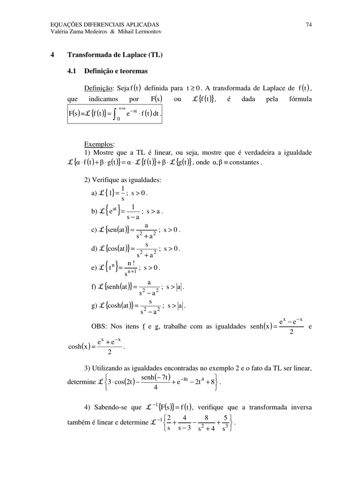 3) Utilizando as igualdades encontradas no exemplo 2 e o fato da TL ser linear,