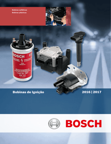 Bobinas asfálticas Bobinas plásticas Bobinas de Ignição 2016 | 2017 Bosch: portfólio completo em ignição Bobinas de ignição Bosch O produto com a melhor performance agora nas embalagens azuis, mais modernas e atrativas O visual moderno e inovador agora chegou nas embalagens das bobinas de ignição plásticas Bosch. O novo layout reflete o diferencial tecnológico da marca Bosch, maior especialista em sistemas de ignição e injeção eletrônica. Cabos de ignição Bosch Alto desempenho, com nova embalagem mais arrojada e informações que facilitam a aplicação 1 prenda a ler o novo A código simplificado: TS VW 082 Referência ao nº Bosch Abreviação da montadora Tipo de cabo SC: Cabo Supressivo TS: Terminal Supressivo 2 3 4 5 Código Bosch Código do produto similar Aplicações resumidas O combustível também vem indicado na própria etiqueta 1 2 4 5 3 Conteúdo Informações A4 Informações técnicas Tabela de aplicação B1 Aplicação por produto B50 Aplicação por montadora Tabela de conversão C1 Resistências das bobinas asfálticas C2 Tabela de conversão – Bosch → outras marcas 2016 | 2017 Autopeças Bosch A4 | Informações técnicas Completo portfólio da marca referência mundial em Ignição: Bosch O bom rendimento dos motores depende de uma boa combustão. Para que isso aconteça, é preciso que o sistema de injeção eletrônica gere uma mistura em perfeitas condições e o sistema de ignição produza a faísca com potência ideal para realizar a combustão adequada. Há mais de 100 anos a Bosch dedica-se ao desenvolvimento e aperfeiçoamento contínuo dos sistemas e componentes de ignição, para atender às necessidades dos mais diferentes tipos de veículos. Autopeças Bosch Faça como os principais fabricantes de veículos do mundo, confie nos sistemas e componentes de ignição Bosch e garanta: ff Melhor desempenho do motor. ff Redução de emissões de gases poluentes. ff Qualidade do equipamento original. ff Maior durabilidade. ff Componentes testados e aprovados sob os mais rigorosos padrões de qualidade. ff Ampla cobertura de mercado. 2016 | 2017 Informações técnicas | A5 Bobinas de ignição Bosch: do original à reposição Por mais de 100 anos a Bosch tem se especializado no desenvolvimento e aperfeiçoamento do sistema de ignição e de seus componentes. Reconhecidos no mercado automotivo por sua alta tecnologia, os sistemas de ignição Bosch são testados e aprovados sob os mais rigorosos padrões de pesquisa e qualidade. Os principais fabricantes de automóveis do mundo confiam na qualidade da bobina de ignição Bosch, participando do desenvolvimento do produto desde sua fase inicial. Montadoras que confiam na qualidade Bosch A Audi B BMW C Citroën, Chrysler F Fiat, Ford G GM J Jaguar, Jeep M Mercedes-Benz N Nissan P Peugeot V Volkswagen, Volvo Porque escolher as bobinas de ignição Bosch também na reposição EE Qualidade do equipamento original. EE Alto desempenho: segurança da melhor tecnologia de ignição do mercado. EE A maior gama de componentes de ignição do mercado. EE O tipo de ignição ideal para cada motor. EE Alta cobertura: ampliação constante do portfólio de produtos para atender às demandas do segmento. 2016 | 2017 Autopeças Bosch A6 | Informações técnicas Bobinas de ignição Bosch: qualidade do equipamento original e alta durabilidade O compromisso com a qualidade está em cada detalhe das bobinas de ignição Bosch: 1 1. Matérias-primas e tratamentos especiais nas ligações garantem a transmissão da alta tensão com total eficiência. 1 2. Ligação de baixa tensão externa com encaixe preciso. 3. Diferentes formas geométricas se ajustam aos espaços disponíveis nos motores. 2 3 4 5 4. Carcaça preenchida com resina exclusiva isola os enrolamentos entre si e em relação ao núcleo. Rigorosos processos de fabricação garantem a alta durabilidade do componente. 5. Núcleo de ferro formado por chapas individuais. 6. Enrolamento primário assentado em uma base diretamente sobre o núcleo. 6 7. Enrolamento secundário sobreposto ao primário, em forma de disco ou de câmaras: aumento da resistência de isolação. 7 Nunca utilize produtos falsificados pois eles comprometem a segurança dos motoristas! Por fora as bobinas de ignição falsificadas não parecem trazer grandes riscos, mas ao analisar seus componentes internos é possível detectar sérios problemas. As bobinas falsificadas são mal projetadas e podem se aquecer durante o uso, ocasionando risco de incêndio. Além disso, produtos desse tipo podem fornecer tensão excessiva para a unidade de comando, danificando-a. Bobinas de ignição de baixa qualidade podem resultar em: EE Funcionamento irregular do motor. EE Perda de performance do veículo. EE Aumento do consumo de combustível. EE Dano na sonda lambda e no catalisador. EE Emissão excessiva de poluentes. Bobina Observe algumas diferenças entre uma bobina Bosch e um produto de baixa qualidade: Bobina de baixa qualidade: contatos elétricos mal soldados. Bobina Bosch: contatos elétricos perfeitos. Autopeças Bosch ada falsific Bobina de baixa qualidade: problema de contato elétrico. Bobina Bosch: supressão de interferência eletromagnética no corpo da bobina. 2016 | 2017 Informações técnicas | A7 Qualidade Bosch comprovada em análises práticas Quatro bobinas de ignição de marcas diferentes foram testadas e comparadas à bobina Bosch de mesma aplicação. Confira o resultado: Bosch Outras marcas Qualidade da resina e processo de preenchimento Falha no processo de preenchimento da resina e material de baixa resistência a altas temperaturas. Essa situação típica dos veículos provoca a formação de bolhas internas e na superfície da resina, gerando fuga de tensão e falha de ignição. EE Resina interna de alta resistência às variações térmicas. EE Processo de preenchimento da resina feito a vácuo, sob rígido controle de temperatura. Funcionalidade e isola