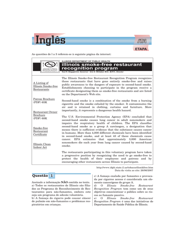 a) Todos os restaurantes de Illinois são filiados ao Programa de Reconhecimento de Restaurantes para não-fumantes, embora este