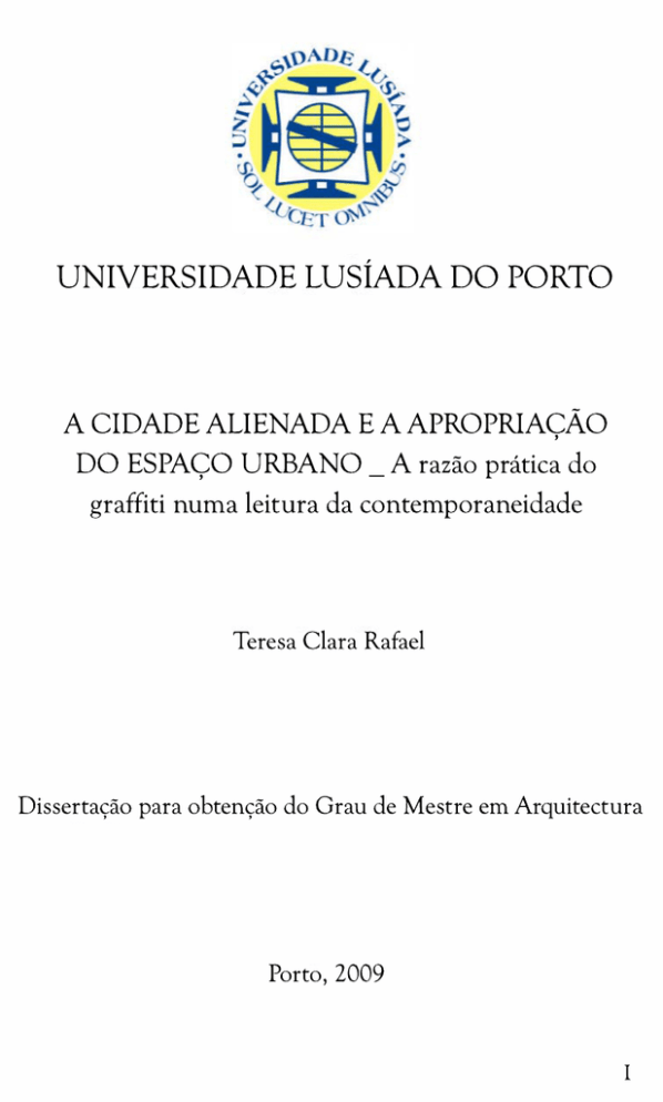 UNI VERSI DADEL USÍ ADADOP ORTO ACI DADEALI ENADAEAAP ROP RI AÇÃO DOESP AÇOURBANO_Ar a z ã opr á t i c ado g r a f f i t i numal e i t ur adac o nt e mpo r a ne i da de Te r e s aCl a r aRa f a e l Di s s e r t a ç ã opa r ao bt e nç ã odoGr a udeMe s t r ee mAr q ui t e c t ur a P o r t o , 2 0 0 9 I Agradecimentos YouthOne, pelo passeio no universo do graffiti. Professor Doutor Henrique Fabião, pela indispensável orientação, motivação e encorajamento. Professor Doutor António Oliveira, pelas conversas. Socióloga Cristina Farinha, pelas críticas incisivas e conselhos, sempre que me perdia em liricismos. Aos meus primos e irmã. Ao meu avô e à minha mãe. II A cidade alienada e a apropriação do espaço urbano _ A razão prática do graffiti numa leitura da contemporaneidade. Índice Introdução 1 I - Enquadramento histórico-teórico da cidade como ideal. 1.1 O modelo clássico de cidade: a cidade ideal. 9 1.2 A importância da escolha do lugar. A harmonia dos elementos. 14 1.3 Cidade limitada geograficamente. O todo e as partes. 23 1.4 Modelo cultural da cidade. A cidade toma forma pelo lugar e reflecte todos os substractos culturais que a geram. 29 II – A alienação na cidade contemporânea _ O lugar perdeu o seu valor intrínseco e passou a ter um valor comercial, em que a ordem económica se sobrepõe à moral, aos valores, à cultura, à identidade, ao homem. 2.1 O lugar como matriz de Sistema e de Cultura. 32 2.2 O valor do lugar. 51 2.3 A utopia moderna e o espaço urbano. 58 2.4 Crescimento e Declínio: Suburbanização; Pós- suburbanização/ Gentrificação. 70 2.5 Cidade e Sociedade _ A promoção social do individualismo nas sociedades contemporâneas põe em causa o papel da cidade, enquanto comunidade e lugar de civilização. 82 III – Subculturas urbanas _ As subculturas autonomizam-se e enfrentam o sistema com regras próprias, abrindo possíveis vias de mudança. 3.1 Alienação e subcultura _ hip hop como construção de uma identidade. 3.2 Graffiti : expressão artística e humana. A emergência do graffiti em Nova Iorque. 90 110 III A cidade alienada e a apropriação do espaço urbano _ A razão prática do graffiti numa leitura da contemporaneidade. 3.3 Graffiti _ Identidade urbana. 117 3.4 Resistência urbana. 124 3.5 Graffiti como instrumento de comunicação e contestação social. Ideologia. 127 3.6 A cidade como espaço de cultura e inclusão. 136 Conclusão 140 Bibliografia 150 Índice de imagens 158 Anexos IV A cidade alienada e a apropriação do espaço urbano _ A razão prática do graffiti numa leitura da contemporaneidade. Resumo A cidade contemporânea é abstracção. O espaço urbano é povoado por gente que, cada vez mais tem um papel anónimo, caminha cegamente pelas aparência da coisas, deslumbrada, como se tudo existisse só para si, ficando as referências individualizadas. A cidade contemporânea carece de um modelo que a regenere, que a entenda como um conjunto de relações entre partes de um todo, por oposição a um conjunto de partes. Numa perspectiva cultural a cidade contemporânea tem falta de mecanismos naturais, pois é um ser vivo que cresce, que lhe permitam estar atenta às emergências que nela se manifestam e que dela resultam, valorizando todos os seus fenómenos culturais emergentes. As subculturas quando não são assimiladas devidamente pela sociedade, por excesso de individualismo e pela própria complexidade desta, são esmagadas. Ao não serem integradas criam fenómenos de alienação e de falta de identidade urbana. O graffiti é um fenómeno urbano por excelência. É uma forma de arte marginal, uma atitude em que a necessidade de manifestação pública é a forma de criar uma identidade: Eu existo. Ao afirmarmos a cidade como um todo, isto é, como uma unidade, verificámos que o graffiti surgiu, como uma fénix, nas partes segregadas da cidade. É um fenómeno que pertence à cidade, e, os seus símbolos, caracterizam uma nova forma cultural, que redefine o espaço urbano. O que começa por ser um fenómeno da desagregação da cidade como um todo converte-se num fenómeno de assimilação por essa conquista de identidade. Procura-se observar a cidade acima dos pontos de vista, tentar vê-la indistintamente, conhecêla nas suas imperfeições, admitindo-a como um todo num caminho de acesso ao ideal, garantindo a sua universalidade absoluta. Palavras-chave: Cidade, Sistema, Segregação, Alienação, Identidade, Cultura, Subcultura, Graffiti. V A cidade alienada e a apropriação do espaço urbano _ A razão prática do graffiti numa leitura da contemporaneidade. Abstract The contemporary town is an abstraction. The urban space is populous with people, that more and more has an anonymous role, walking blindly for the appearance of things, dazzled, as if everything it only existed for itself, forcing references to turn personal. The contemporary town is absent of a theoretical representation that can regenerates itself, understanding it as a set of relations between parts of a whole, and not to a set of parts. In a cultural perspective the contemporary town lacks of natural mechanisms, since, the town is an alive being in a constant growing, that must qualified itself to be aware of emergencies, that result and comes out from within, promoting its cultural phenomenon. When they are not properly assimilated by society as a whole, by excess of individualism and its own complexity, subcultures are crushed. Staying unknown, and not integrated, they create alienation, misunderstanding the urban identity. Graffiti is an urban phenomenon, par excellence. It is an art form, free of direction and rules, towards to public expression, creating a new born identity: I exist. Promoting the city as a whole, in its unity, one realizes that graffiti appeared, as a phoenix, in the segregated parts of the city. Graffiti belongs to the city, and, its symbols, characterize new cultural forms, giving new meanin