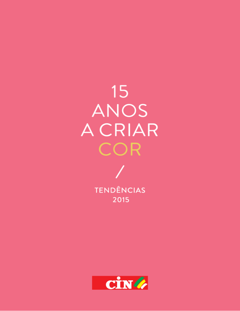 TENDÊNCIAS 2015 UM MUNDO DE COR 15 ANOS. 15 CORES. 15 IDEIAS PARA PREENCHER A CASA DE SENSAÇÕES ÚNICAS. DESCUBRA AS PROPOSTAS DA CIN PARA VIVER AS TENDÊNCIAS DE COR, COM AS QUAIS CELEBRAMOS 15 ANOS A INOVAR NO DESENHO DE NOVAS CORES. TENDÊNCIAS 2015 E667 CHALK WHITE E663 PERFECT GREY E662 LUMIÈRE NOIRE E670 MISS ROSE E671 JUST MAUVE E672 DEEP TAUPE E665 YUZU DREAM E659 CORAL BLOSSOM E660 PINK POWER E661 TURQUOISE PARADISE E673 COBALT BLUE E668 JACARANDA E666 GREEN MARBLE E669 GOLD TAFFETA E664 LIKE COPPER 1 15 CHALK WHITE O tom silencioso e intemporal do branco converte o lar num oásis de repouso, um refúgio quase de sonho, distante do ruído exterior. E667 2 15 PERFECT GREY O equilíbrio ideal. Uma matiz subtil e contemporânea que, sem erguer a voz, é capaz de transmitir sensações pelas quais o tempo não passa. E663 3 15 LUMIÈRE NOIRE A partir da escuridão, o negro capta a luz para a transformar e reflectir com uma elegância requintada e uma personalidade sofisticada. E662 4 15 MISS ROSE Um rosa doce e delicioso, tão delicado como um aroma subtil que seduz com o seu encanto. O toque perfeito de feminiLIdade. E670 5 15 JUST MAUVE O seu segredo é uma elegância singular e refinada. Uma cor discreta que sabe destacar-se e seduzir-nos com o seu ar misterioso. E671 6 15 DEEP TAUPE Um cinzento que cria ambientes quentes e interiores calmos. De toque agradável, proporciona uma acolhedora sensação de conforto. E672 7 15 YUZU DREAM Uma dose ilimitada de imaginação, fantasia e optimismo. A sua luminosidade e acidez são um estímulo para os sentidos. E665 8 15 CORAL BLOSSOM Uma ode à Primavera, à beleza de uma flor em todo o seu esplendor. Um olhar positivo sobre a vida que nos envolve num ambiente doce e suave. E659 9 15 PINK POWER É ver a vida cor-de-rosa... É a força e o optimismo femininos. É um rosa apaixonante! E é a cor do ano. E660 10 15 TURQUOISE PARADISE Um ar exótico que sopra pela janela. O lar é uma paisagem de Verão, quase um sonho, tão refrescante como um banho em águas cristalinas. E661 11 15 COBALT BLUE Puro e intenso. Um azul electrizante e estimulante que atrai olhares e faz vibrar. Energia e criatividade em estado puro. E673 12 15 jacaranda É feminino, atraente e fascinante... Como uma árvore coberta de flores violeta. Um convite à harmonía e à paz interior. E668 13 15 GREEN MARBLE O mármore verde exerce um magnetismo de efeito relaxante. Uma matéria nobre e pura que sugere formas e texturas hipnóticas. E666 14 15 GOLD TAFFETA Uma cor que abre as portas a um mundo onde reina a arte e o luxo, as antiguidades e os pormenores decorativos mais elegantes. E669 15 15 LIKE COPPER Uma cor incandescente, inspirada no brilho do cobre, que parece capaz de subir a temperatura à sua volta. E664
