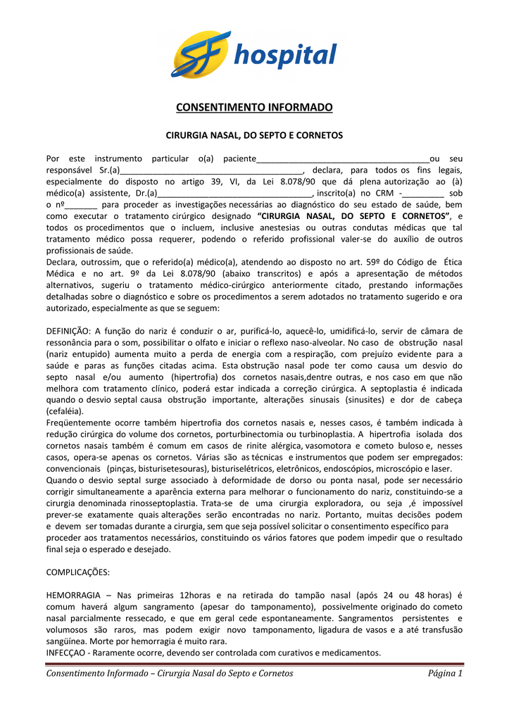 termo de consentimento informado para cirurgia nasal, do