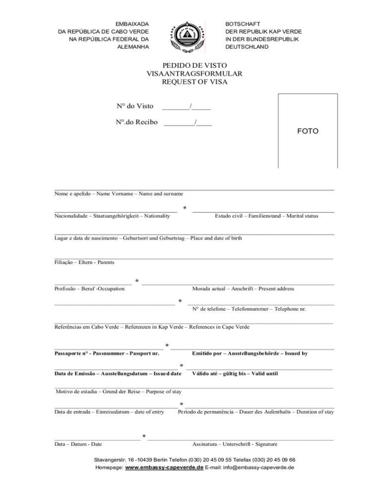 Visaantragsformular - Botschaft der Republik Kap Verde