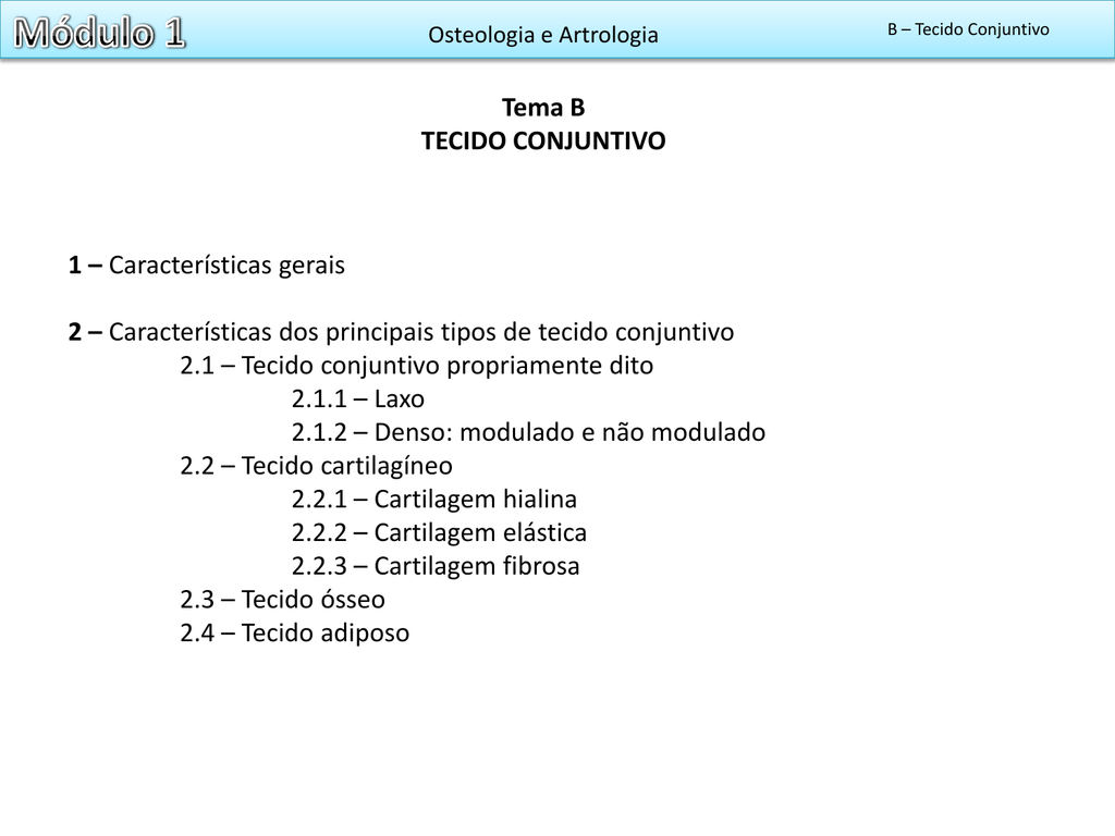 Módulo 1 Tema B - Tecido conjuntivo