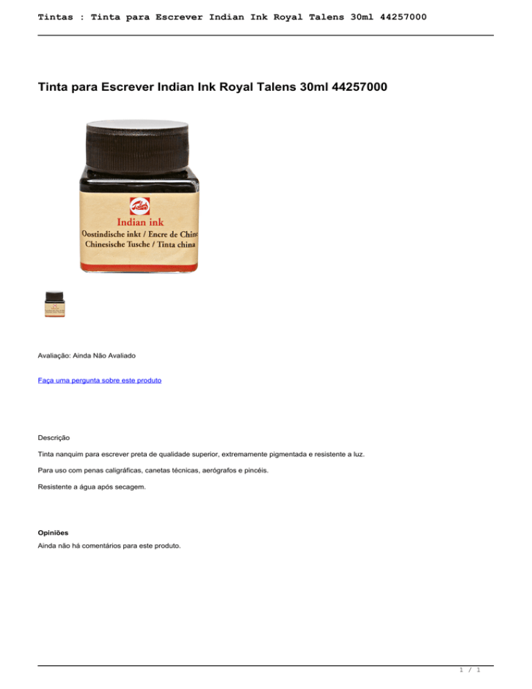 Tintas : Tinta para Escrever Indian Ink Royal Talens 30ml 44257000