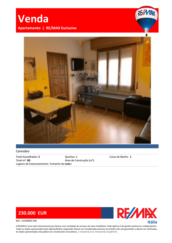 Venda Apartamento | RE/MAX Exclusivo Cannobio Total Assoalhadas: 5 Quartos: 2 Total m²: 80 Àrea de Construção (m²): Lugares de Estacionamento: Tamanho do Lote:: Casas de Banho: 1 230.000 EUR Ref:: 21330003-546 Itália A RE/MAX é uma rede internacional que oferece uma variedade de serviços do ramo imobiliário. Cada agência é de gestão autónoma e independente. Todos os dados apresentados pelo Agente/Broker angariador devem ser considerados precisos no entanto não são garantidos e devem ser verificados. Os dados apresentados não podem ser considerados vinculativos. | Created by iList. Powered by GryphTech. Venda Apartamento | RE/MAX Exclusivo Sara Zammaretti Telefone do Agente 333 79 37 823 Telefone Directo 333 79 37 823 Fax: [email protected] www.remax.it/lagoimmobilien RE/MAX Lagoimmobilien Via Giovanola n. 4 28822 Cannobio VB Italy CANNOBIO, Bell'appartamento in zona centrale a Cannobio. L'appartamento si trova a piano rialzato di un complesso di 6 appartamenti ed è totalmente indipendente sia per quanto riguarda l'accesso che le utenze (non ci sono inoltre spese condominiali). L'appartamento è composto da doppio ingresso, utile per evitare dispersioni di calore e attrezzato con un capiente armadio a muro, ingresso sul soggiorno, dotato di canna fumaria e stufa a pellet, cucina, disimpegno, due camere da letto e bagno con doccia e lavatrice. I pavimenti sono in parquet, le ampie finestre sono dotate di vetro camera e tapparelle esterne. La facciata esterna e' isolata con un cappotto che garantisce un'ottima isolazione termica. Completano la proprietà un terrazzo (ad uso esclusivo) dotato di nicchia per la caldaia e di un comodo ripostiglio e due posti auto scoperti ad uso esclusivo. L'appartamento viene venduto eventualmente arredato. Resterà comunque la cucina, di qualità, praticamente nuova e 230.000 EUR Ref:: 21330003-546 Itália A RE/MAX é uma rede internacional que oferece uma variedade de serviços do ramo imobiliário. Cada agência é de gestão autónoma e independente. Todos os dados apresentados pelo Agente/Broker angariador devem ser considerados precisos no entanto não são garantidos e devem ser verificados. Os dados apresentados não podem ser considerados vinculativos. | Created by iList. Powered by GryphTech. Venda Apartamento | RE/MAX Exclusivo dotata di tutti gli elettrodomestici, l'arredo bagno e il capiente armadio nel disimpegno. L'appartamento è stato oggetto di un recente restyling: il pavimento in legno, le porte, la caldaia a condensazione, il bussolotto di ingresso sono sostanzialmente nuovi. L'appartamento si trova a pochi minuti a piedi dal centro storico di Cannobio, in una zona residenziale particolarmente tranquilla. Características: Perto de Lojas ¦ Transporte Público Próximo ¦ Terraço ¦ Aquecimento Divisões Sitting Room 230.000 EUR Ref:: 21330003-546 Itália A RE/MAX é uma rede internacional que oferece uma variedade de serviços do ramo imobiliário. Cada agência é de gestão autónoma e independente. Todos os dados apresentados pelo Agente/Broker angariador devem ser considerados precisos no entanto não são garantidos e devem ser verificados. Os dados apresentados não podem ser considerados vinculativos. | Created by iList. Powered by GryphTech.