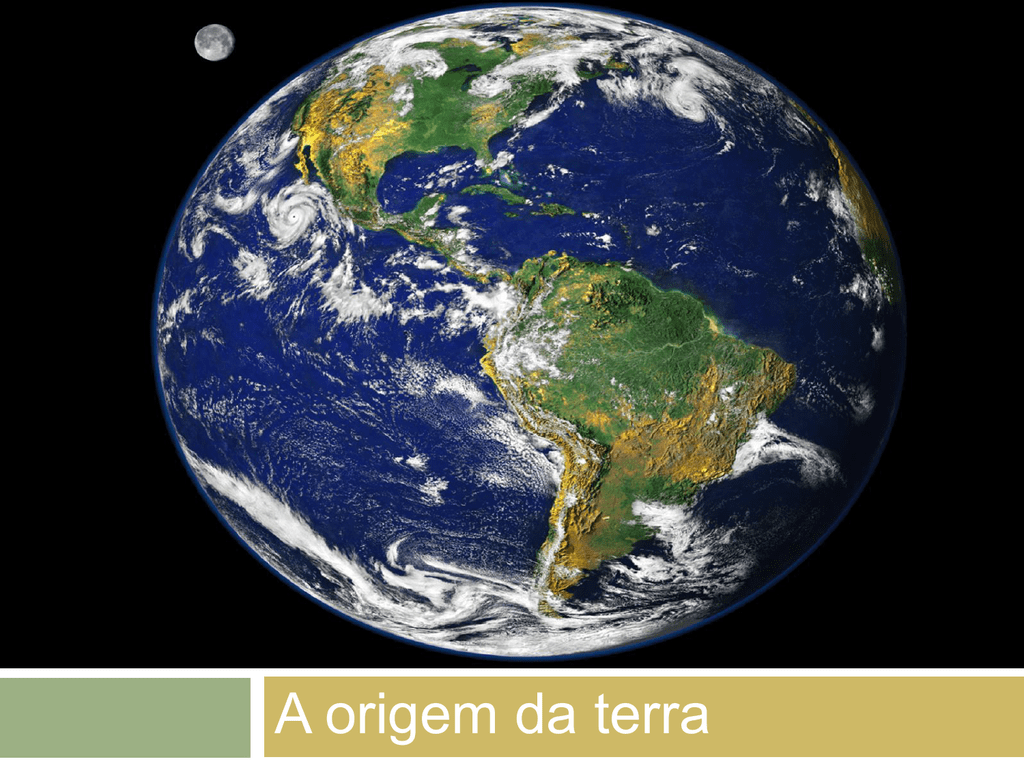 A origem da terra O planeta Terra e suas origens O planeta terra é formado pelo mesmo material que compõe os demais corpos do Sistema Solar e tudo mais que forma o Universo. Portanto, a origem da Terra está ligada intrinsecamente à formação de todos os corpos do Sistema Solar e de todas as estrelas a O planeta Terra e suas origens A maioria dos cientistas que estudam a origem da Terra faz uma associação com a teoria do Big Bang. Segundo esta teoria, há aproximadamente 15 bilhões de anos o universo era um único ponto que reunia toda matéria e energia existente, o qual explodiu dando origem a todos os astros. O planeta Terra e suas origens Há cerca de 4,5 bilhões de anos ocorreu a formação do Sistema Solar, quando o Universo já contava de 8 a 10 bilhões de anos. O planeta Terra e suas origens Formação do Sistema Solar: Durante muitos milhões de anos, partículas que formavam a nebulosa solar (nuvem de gás e de poeira interestelar) que se movimentavam aleatoriamente foram atraídas para o centro de massa da nebulosa. Dessa forma se formou a protoestrela que deu origem ao Sol. Enquanto o Sol ficava mais luminoso, a nuvem de gás tornava-se menos uniforme. Isso porque começavam a se formar esferas menores que eram muito pequenas para atingir elevadas temperaturas e transformarem-se em estrelas. Com o passar do tempo, estas esferas, girando ao redor da estrela central primitiva, deram origem aos planetas. O planeta Terra e suas origens O Sol surgiu no centro do sistema, com quase a totalidade da matéria se convergindo para aquele ponto. Algumas pequenas porções de matéria estavam próximas o suficiente para que a atração entre elas convergisse para um outro centro. Estes outros pontos de aglutinação de matéria permaneceram em movimento. Alguns realizavam movimento orbital, mas a maioria desses agrupamentos, denominados (Fonte: LANG, 2001). O planeta Terra e suas origens Os planetesimais se atraíram, dando origem a grandes porções de matéria, que passamos a chamar protoplanetas. Uma dessas grandes porções originou a Terra. O planeta Terra e suas origens Conforme a Terra (ainda um protoplaneta) viajava dentro do Sistema Solar primitivo, ela varria toda as partículas menores que encontrava. Essas pequenas rochas, colidindo com a Terra, passavam a fazer parte dela. Esse processo é chamado O planeta Terra e suas origens Diferenciação (formação do disco proto-planetário): a ação do vento solar (prótons, elétrons, partículas alfa e radiações de luz e calor) distribuiu a matéria presente conforme o seu peso atômico, levando os átomos mais leves para as regiões mais O planeta Terra e suas origens Dessa forma, os planetas mais próximos do Sol são mais densos, com estado sólido predominante (Mercúrio, Vênus, Terra e Marte). Isso porque durante a formação desses planetas, essas pequenas esferas não tiveram a capacidade de reter gases mais leves como o Hidrogênico e o Hélio. O planeta Terra e suas origens Os protoplanetas mais distantes foram atraindo esses gases e assim formaram-se os chamados “Gigantes gasosos”: Júpiter, Saturno, Urano e Netuno. Atualmente, Plutão classificado como um planeta anão, sendo sua estrutura parecida com um asteróide. A Terra primitiva A Terra, na fase de protoplaneta não tinha forma regular, mas à proporção que atraiu maior quantidade de matéria, começou a tomar forma esférica; Possui cerca de 4,5 bilhões de anos. A Terra primitiva Quando se formou, a Terra era constituída por um material pastoso devido às altas temperaturas. O vapor exalado das fendas já continha cerca de 10% de água. Durante esse processo, muitas vezes a camada endurecida, denominada Crosta terrestre, rompiase pela pressão do material quente derretido e em constante movimento existente nas regiões mais interiores do planeta. Então gases e vapores, inclusive vapor de água, eram liberados para o exterior. A Terra primitiva O vapor-d'água, à medida que se afastava da massa incandescente, resfriava-se e se transformava em água líquida, caindo em forma de chuva. Assim, repetindo-se por muitas vezes, a superfície da Terra foi se esfriando lentamente e grandes quantidades de água foram nela se acumulando. Surgimento da vida na Terra Teorias do surgimento da vida Estima-se que a primeira proteína capaz de se reproduzir haja surgido na Terra há aproximadamente, 4 bilhões de anos. Formas complexas começaram a surgir há pelo menos 3,55 bilhões de anos, conforme análise de impressões fossilizadas de Teorias do surgimento da vida: condições favoráveis A. I. Oparin (1936), sugeriu a seguinte hipótese: a alta temperatura do planeta e a ocorrência de descargas elétricas na atmosfera provocaram reações químicas entre os elementos C, H, N e O, possibilitando o aparecimento de aminoácidos por ligações peptídicas. Dessa forma, surgiriam moléculas maiores de substância albuminóides. Seriam as primeiras proteínas a existir na Terra. A. I. Oparin Teorias do surgimento da vida: condições favoráveis Em 1953, o norte-americano Stanley Miller, construiu um aparelho capaz de submeter os gases da atmosfera primitiva (metano, amônia, hidrogênio e vapor d’água) a descargas elétricas, dessa forma testando a hipótese de Oparin. Das reações ocorridas entre os gases surgiram compostos orgânicos, entre eles os aminoácidos, que são os formadores das proteínas. S. Miller Teorias do surgimento da vida: condições favoráveis Pouco tempo depois, em 1957, submeteu uma mistura de aminoácidos secos a aquecimento prolongado e demonstrou que eles reagiam entre si, formando cadeias peptídicas, com aparecimento de moléculas protéicas pequenas. As experiências de Miller e Fox comprovaram a veracidade da hipótese de Oparin. Sidney Fox Hipótese Heterotrófica De acordo com as evidências coletadas e testadas, formulou-se a chamada Hipótese Heterotrófica para o surgimento da vida na Terra: Os gases presentes na at