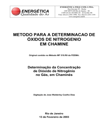 METODO PARA A DETERMINACAO DE ÓXIDOS DE NITROGENIO