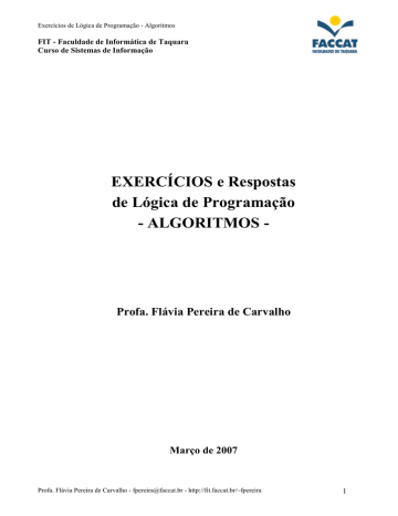 Apostila de Lógica de Programação - ALGORITMOS -