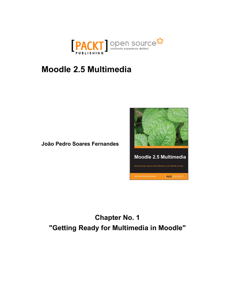 Moodle 2.5 Multimedia João Pedro Soares Fernandes Chapter No. 1 "Getting Ready for Multimedia in Moodle" In this package, you will find: A Biography of the author of the book A preview chapter from the book, Chapter NO.1 "Getting Ready for Multimedia in Moodle" A synopsis of the book’s content Information on where to buy this book About the Author João Pedro Soares Fernandes is a science teacher from Portugal, who has been working on Moodle since 2004. He has been involved in several Moodle initiatives at school, university, and government levels as a teacher, trainer, course and content developer, manager, consultant, designer, and researcher. João's main interests range from education to multimedia, the Web, participation, democracy, and human development. In a single year, he can be seen in several corners of the earth, either working, visiting schools, hiking, or taking photos in mostly non-touristic venues. He also loves music, old cheap cars, farming, cooking, and spending his time in nature. I would like to thank my family, friends, colleagues, and students for their support through the sometimes-painful process of writing a book while you work, study, and try to have a life. Thanks for all of the ideas and comments, and thanks for the shared experiences that inspired many of the activities in this book. And thanks to all the free software and free content communities for making great tools and resources available to everyone. This one is ours. For More Information: www.packtpub.com/moodle-2-5-multimedia/book Moodle 2.5 Multimedia Moodle 2.5 Multimedia provides you with everything you need to include pictures, sound, video, animations, interactive elements, and more in your Moodle courses. You'll develop Moodle courses that you are proud of and that your students enjoy. This book was written around the design of an online course called Music for everyday life using Moodle, where teachers and students will be required to create, share, and discuss multimedia works. Music was chosen as the main theme because besides being fun and horizontal to all cultures, it's a subject that can easily gather contributions from areas such as Science (for example, Waves and Sound), Geography (with instruments from around the world, such as the Ukulele), Languages (music in itself is a language), World History (from medieval music to jazz), or even Social Sciences (the law around creative works). This book was not made for musicians in particular, and one of its main challenges was to reach different educators from different subjects. Music is simply the way to get all of these perspectives working together. Throughout the book, we will create some dozens of multimedia artifacts that are hopefully relevant, easy-to-do, and as little time-consuming as possible, to develop for us teachers and trainers with busy schedules. And for this, we will use multiple platforms, free software, and web applications. Better learning is not necessarily a consequence of instruction, so the focus of the proposed activities will be on giving the learner better opportunities to create and share multimedia artifacts, and to dialog about and reflect on these constructions with others. I hope you enjoy it. What This Book Covers Chapter 1, Getting Ready for Multimedia in Moodle, takes a look at the evolution of multimedia, its advantages and uses in teaching and learning, and how these can be used with Moodle. We will also see some of the requirements for using multimedia in Moodle, and configure it accordingly. We will make three simple experiments in a forum with pictures, sound, and video, to see if everything is working as expected while integrating these in Moodle. Chapter 2, Picture This, deals with images, so we will look at different ways of finding and inserting images in Moodle. We then learn about image editing tasks, commented screenshots, and comic strips. We will also learn how to export presentations as images, adding them to a Moodle lesson, or as an alternative, publishing these presentations in an online service. For More Information: www.packtpub.com/moodle-2-5-multimedia/book Chapter 3, Sound and Music, focuses on tasks for the Moodle integration of sound and music elements. The resources created will make information available in improved ways to students, and will also get them to create audio works, such as soundtracks, slices, remixes, voice recordings, text-to-speech, and podcasts. Chapter 4, Video, focuses on video production and editing, looking at different ways of using these in Moodle. We will start by looking at places to find free videos online, find ways of downloading videos from online services, extract DVD selections, create photo stories, screencasts, online TVs, and stop motion videos. Chapter 5, Understanding Web-based Applications and Other Multimedia Forms, focuses on activities that we can do with Moodle and web tools. We will create interactive floor plans, timelines, maps, online presentations, gadgets to represent data, and mind maps. Chapter 6, Multimedia and Assessments, deals with multimedia elements in quizzes, lessons, and assignments. We will use applications that allow us to create interactive exercises and games that can be easily accessed from and integrated into Moodle, such as crosswords, puzzles, and matching pairs among others. We will look at rubrics as ways of assessing multimedia works in a quick and easy way. Chapter 7, Synchronous Communication and Interaction, teaches us how to interact with students in Moodle courses in real time by using an online chat and online meeting service. This allows text, audio, and video chat and also a sketchpad, file sharing, recording, and desktop and screen sharing. Chapter 8, Common Multimedia Issues in Moodle, deals with some common issues on multimedia in Moodle related to copyright, e-safety, referencing sources, and other similar issues. We conclude with some possible modules and plugins to install in Moodle to expand 
