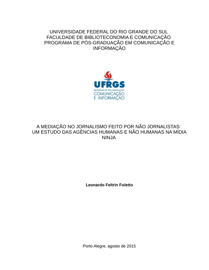 UNIVERSIDADE FEDERAL DO RIO GRANDE DO SUL FACULDADE DE BIBLIOTECONOMIA E COMUNICAÇÃO PROGRAMA DE PÓS-GRADUAÇÃO EM COMUNICAÇÃO E INFORMAÇÃO A MEDIAÇÃO NO JORNALISMO FEITO POR NÃO JORNALISTAS: UM ESTUDO DAS AGÊNCIAS HUMANAS E NÃO HUMANAS NA MÍDIA NINJA Leonardo Feltrin Foletto Porto Alegre, agosto de 2015 UNIVERSIDADE FEDERAL DO RIO GRANDE DO SUL FACULDADE DE BIBLIOTECONOMIA E COMUNICAÇÃO PROGRAMA DE PÓS-GRADUAÇÃO EM COMUNICAÇÃO E INFORMAÇÃO A MEDIAÇÃO NO JORNALISMO FEITO POR NÃO JORNALISTAS: UM ESTUDO DA DAS AGÊNCIAS HUMANAS E NÃO HUMANAS NA MÍDIA NINJA Projeto de qualificação apresentado ao Programa de PósGraduação em Comunicação e Informação da Universidade Federal do Rio Grande do Sul como requisito parcial para a obtenção do grau de Doutor Orientadora: Prof. Dra. Virginia Pradelina da Fonseca Silveira Porto Alegre, agosto de 2015 SUMÁRIO 1. APRESENTAÇÃO E JUSTIFICATIVA .....................................................................3 2. OBJETO EMPÍRICO: APRESENTAÇÃO E JUSTIFICATIVA.....................................8 3. PROBLEMA .............................................................................................................13 4. OBJETIVOS .............................................................................................................13 5. REFERENCIAL TEÓRICO .......................................................................................14 5.1. MUDANÇAS NO JORNALISMO HOJE: JORNALISMO PÓS-INDUSTRIAL E APROXIMAÇÃO À CULTURAHACKER .....................................................................14 5.2. BREVE HISTÓRICO DAS TECNOLOGIAS NA HISTÓRIA DO JORNALISMO.......21 5.3.AS CONCEPÇÕES DE MEDIAÇÃO NO JORNALISMO DO SÉCULO XX..............24 5.4 INTRODUÇÃO À TEORIA ATOR-REDE E A UMA IDEIA DE MEDIAÇÃO................28 5.5 TAR E JORNALISMO: ENTENDIMENTOS E APROXIMAÇÕES POSSÍVEIS........34 6. QUADRO METODOLÓGICO .....................................................................................38 6.1. ANÁLISE PILOTO: 6 DIAS COM A MÍDIA NINJA NO RIO DE JANEIRO................41 6.1.1.APRESENTANDO O FORA DO EIXO E A MÍDIA NINJA.......................................43 6.1.2.INSERÇÃO EM CAMPO .......................................................................................48 6.1.3. CONTATO INICIAL: EXPLICAÇÃO DO MODUS OPERANDI DA OBSERVAÇÃO ...............................................................................................................50 6.1.4. O FLUXO DE COMUNICAÇÃO E OTELEGRAM ................................................52 6.1.5. NO MORRO DOS PRAZERES, O "JORNALISMO-AÇÃO" DA MÍDIA NINJA......57 6.1.6. QUESTÕES PARA A CONTINUIDADE DA PESQUISA .......................................62 7. PROVÁVEL SUMÁRIO DA TESE ..............................................................................64 8. CRONOGRAMA .........................................................................................................65 9. REFERÊNCIAS BIBLIOGRÁFICAS ...........................................................................66 1. APRESENTAÇÃO E JUSTIFICATIVA São tantas as dúvidas em relação às transformações que estão ocorrendo no jornalismo do século XXI que este projeto já começa com perguntas que inquietam e motivam a investigação: num contexto de liberação do polo emissor da informação (LEVY, 1997) para que “qualquer pessoa, com recursos mínimos, possa produzir e circular informação sem pedir autorização ou o aval a quem quer que seja (barões das indústrias culturais, intelligentsia, governos)" (LEMOS, 2009, p.8), o que distinguiria a produção de um grupo de pessoas organizadas coletivamente com o objetivo de relatar fatos de um grupo de jornalistas profissionais que trabalha em uma publicação que afirma fazer jornalismo? No cenário de ampliação de oferta informativa que, segundo Anderson, Bell e Shirky (2013), tem ocasionado a transformação do sistema industrial em um sistema “pós-industrial”, em que o jornalismo convencional tem assistido ao crescimento acelerado da concorrência de não-profissionais na produção de informações, seja em redes sociais, blogs ou outros veículos, o que distingue o jornalismo alternativo, independente, colaborativo, participativo, entre outros termos usados para designar aquilo que não é o convencional, do chamado jornalismo profissional? Essas são perguntas que chamam atenção para um aspecto central da atividade de "comunicação de informações de interesse público" (BENEDETI, 2009) que caracteriza o jornalismo: a mediação. Qual a rede de mediações que ocorre nas etapas de produção do que hoje chamamos jornalismo? Quem são os mediadores nessas etapas? Os objetos técnicos participam desses processos tão ativamente quanto os humanos envolvidos? É possível mediar sem transformar, sem traduzir? A discussão da mediação é o cerne da questão que sempre volta à tona: o que é o jornalismo? Num contexto de "auto-comunicação de massas" (CASTELLS, 2007), ele pode ser compreendido, a priori, como a ação principal realizada dentro de uma instituição organizada de acordo com certos preceitos identificados como profissionais? Ou, ao contrário, o jornalismo seria um processo momentâneo que acontece enquanto associações específicas entre atores, sejam humanos ou não humanos, são estabelecidas? Que associações seriam essas? Por fim, e não menos importante: como os estudos do jornalismo, da comunicação e da tecnologia olham para essas questões? São muitas perguntas que, feitas já na apresentação deste trabalho, servem de norte ao desenvolvimento do projeto de tese, não necessariamente para serem todas respondidas, o que este trabalho certamente não daria conta. O contexto de constante mutação no jornalismo e na comunicação, proporcionado sobretudo pelo desenvolvimento da nanotecnologia e da internet, parece ser um momento adequado 