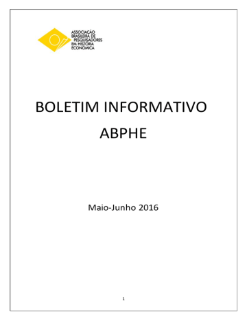 BOLETIM INFORMATIVO ABPHE Maio-Junho 2016 1 Editorial Este é o Boletim Informativo da ABPHE que antecede a realização dos dois principais eventos de 2016 organizados pela Associação: o Quinto Congresso Latino-Americano de História Econômica – CLADHE V e a 6a Conferência Internacional de História Econômica & VIII Encontro de Pós-Graduação em História Econômica. Além de informações sobre tais eventos, que ocorrerão simultaneamente em São Paulo entre os dias 19 e 21 de julho de 2016, o presente boletim traz notícias de lançamento de livros, editais de bolsas de pós-doutorado no exterior, realização de outros eventos da área de História Econômica e uma nota em homenagem a Thomas Skidmore, falecido em 11 de julho de 2016. Em 2015, criamos o Prêmio ABPHE de tese e dissertação. Com o objetivo de estimular a pesquisa e reconhecer o mérito dos melhores trabalhos de história econômica defendidos em programas de Pós-Graduação do Brasil, a ABPHE pretende apoiar a publicação do trabalho premiado. Informamos que foram inscritos 16 trabalhos: 9 teses de doutorado e 7 dissertações de mestrado. A comissão avaliadora, composta pelos professores Renato Leite Marcondes, Paulo Roberto Cimó Queiroz e Maria Heloisa Lenz, indicará a tese ou dissertação premiada em primeiro lugar, podendo também decidir pela concessão de Menção Honrosa para tese ou dissertação que tenha atingido patamar de excelência merecedor de destaque. A entrega do Prêmio será realizada durante o Quinto Congresso Latino-Americano de História Econômica (CLADHE V), que se realizará na Faculdade de Economia, Administração e Contabilidade da Universidade de São Paulo, de 19 a 21 de Julho de 2016. Finalmente, aproveitamos a oportunidade para convidar os sócios da ABPHE a nos ajudar com a circulação de notícias, nos enviando informações sobre eventos, concursos e publicação de livros que possam ser de interesse dos associados. Entre em contato conosco pelo e-mail: [email protected] Esperamos encontrá-los muito em breve em São Paulo no CLADHE V. Informes ABPHE Anuidades A Associação está trabalhando para manter atualizado o pagamento das anuidades de seus sócios(as). A anuidade de 2016 permanece com o mesmo valor do ano passado: R$ 130,00 para profissionais e R$ 65,00 para estudantes. Para realizar o pagamento da anuidade de 2016 (e, eventualmente, de anuidades atrasadas), basta fazer um depósito de acordo com os dados bancários abaixo indicados. Durante o CLADHE V a secretaria da ABPHE estará à disposição para realizar novas filiações e para receber o pagamento das anuidades. 2 Banco Itaú Unibanco S/A - Agência 1536; CC: 36311-0; Banco do Brasil – Agência 1504-0; CC: 17.370-3; CNPJ ABPHE: 86.724.846/0001-90. Após o pagamento, favor enviar o comprovante de depósito para o e-mail [email protected]. Recebido o comprovante, enviaremos o recibo também via e-mail. ATENÇÃO! Pagamento da anuidade em atraso de 2015. Se o pagamento da anuidade de 2015 for feito entre 31 de janeiro e 31 de maio de 2016, o valor da anuidade sobe para R$ 140,00 para profissionais e R$ 70,00 para estudantes. Se o pagamento da anuidade de 2015 for feito depois de 31 de maio de 2016, o valor da anuidade sobe para R$ 160,00 para profissionais e R$ 80,00 para estudantes . História Econômica & História de Empresas (impressão de números) A diretoria da Associação e a comissão editorial da revista convidam os sócios e demais interessados a submeter textos para História Econômica & História de Empresas (HE&HE, ISSN 1519-3314). A revista é uma publicação semestral da ABPHE, que agora possui um site próprio e cujo acesso pode ser realizado pelo endereço www.abphe.org.br. Atualmente a revista está indexada na EconLit, no Journal of Economic Literature (versões eletrônica on-line e CD ROM), na Econpapers, no IDEAS, no LATINDEX e no Portal de Periódicos da CAPES. Estamos dando continuidade aos esforços para indexá la também nas bases SciELO e Redalyc o mais breve possível, com o objetivo de ampliar ainda mais sua visibilidade e qualificação. Como parte deste esforço, os artigos devem ser submetidos através do Open Journal System (OJS), um sistema eletrônico de editoração de revistas cuja utilização é indispensável para a inclusão da História Econômica & História de Empresas nos principais indexadores. Autores e pareceristas devem cadastrar-se por meio do link http://www.revistaabphe.uff.br. A atual diretoria, em conjunto com a nova Comissão Editorial da HE&HE composta por Bruno Aidar (editor), Ivanil Nunes, Alcides Goularti Filho e Carlos Eduardo Valencia Villa, voltará a oferecer aos autores e sócios da ABPHE a revista pelo custo de sua impressão. Os números publicados entre 2012 e 2015 já podem ser adquiridos por sócios e autores pelo valor de R$ 30,00 cada exemplar e por demais interessados pelo valor de R$ 50,00 reais (o valor já prevê o envio pelo correio). Pedimos que os interessados entrem em contato conosco ([email protected]) indicando quais são os números de seu interesse, qual deve ser o endereço para 3 recebimento das revistas, juntamente com o comprovante do pagamento dos números selecionados. O pagamento deverá ser realizado na conta da ABPHE, no Banco do Brasil, agência 1504-0, conta corrente 17.370-0. Durante o CLADHE V cada exemplar da revista será vendido por R$ 25,00, sem o custo do envio por correio, na área de inscrição do evento. Thomas Skidmore (1932-2016) Dentre os pesquisadores estrangeiros que se dedicaram a estudar o Brasil e a América Latina, Thomas Skidmore é, sem dúvida alguma, um dos mais conhecidos. Sua obra sobre política, sociedade e cultura brasileira lhe rendeu notoriedade dentro e fora do Brasil. Falecido em 11 de julho de 2016, aos 83 anos, num asilo em Westerly, Rhode Island (Estados Unidos), Skidmore era natural da cidade norte-americana de Troy, no estado de Ohio; se graduou em ciência polític
