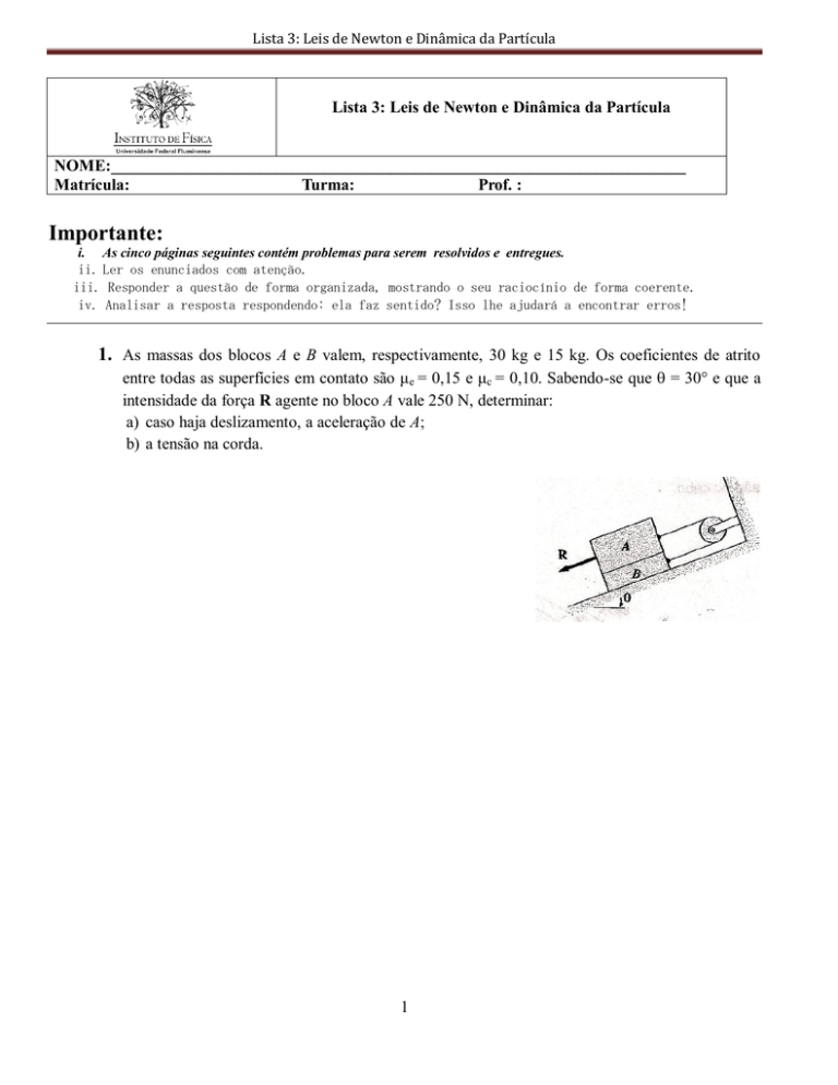 2ª ficha Leis de Newton Aplicações das leis de Newton F G F G